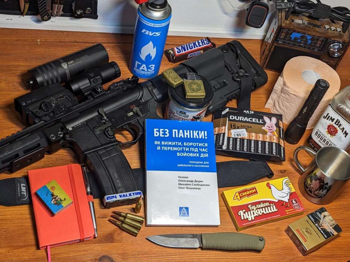 Еда, спички, зажигалка с запасом топлива, газовый баллон (с плиткой), бумажный блокнот с ручкой, туалетная бумага, нож, фонарик, радио, батарейки для всего… Это то, что 100% будет актуальнее “энергонезависимости”. В зависимости от длины периода, на который будет подготовка, запас сигарет и алкоголя можно начинать рассматривать как валюту, а не для собственного потребления. Если в хозяйстве уже есть легальное огнестрельное оружие, то оно должно быть полностью готово к использованию, включая достаточное количество патронов. Об этом все и еще множество важных деталей подготовки гражданских лиц к боевым действиям можно узнать из важнейшего элемента на фотографии – той же книги “Без паники!”, электронная версия которой сейчас распространяется издательством “Астролябия” бесплатно.